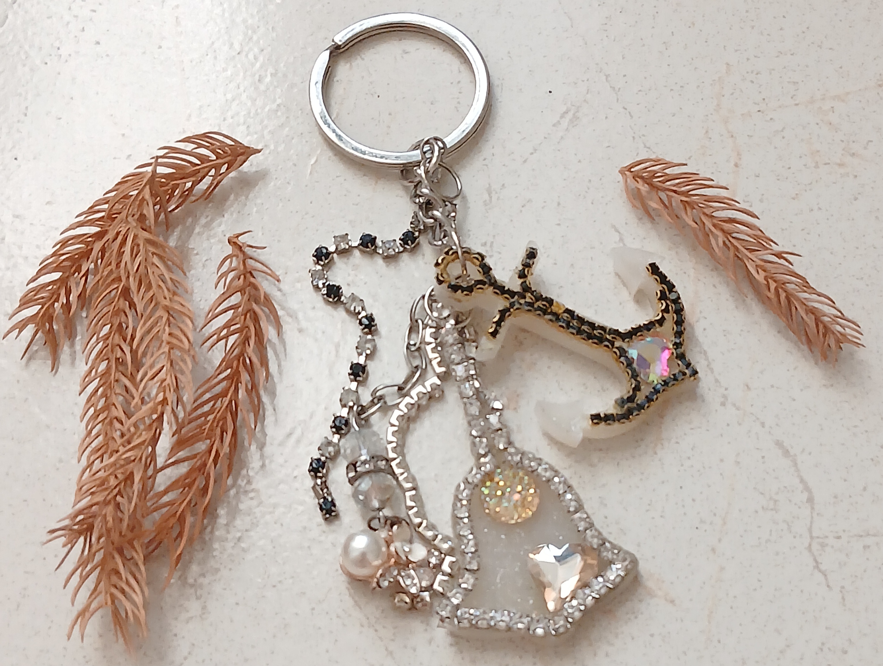 "آویز کیف و جاکلیدی ما از رزین با نگینهای اتریشی ساخته شده. داخل این زنگوله یک قلب اتریشی قرار داره که زیبایی و شکوه خاصی به آن میبخشه. همچنین، یک طرح لنگر داریم که داخل آن هم نگینهای اتریشی کار شده است. این آویزها ترکیبی از هنر و زیبایی هستند و به لوازم شما جلوهای خاص میدهند."